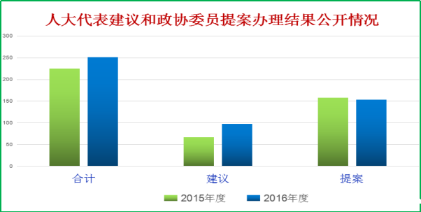 2016年,由区政府部门和单位办理的 “两会”建议提案共251件(建议98件、提案153件),全部按时办结,没有不满意件。均及时通过“宿城在线”人大代表建议和政协委员提案办理专栏进行网上公开,方便公众查阅。